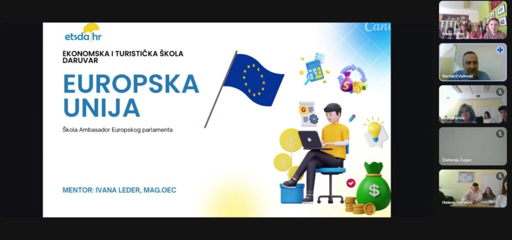 Naši juniori ambasadori Europskog parlamenta, u suradnji s Ekonomskom i turističkom školom Daruvar te Srednjom školom Ban Josip Jelačić iz Zaprešića, uspješno su realizirali edukativan i dinamičan projekt koji je spojio učenje i interaktivnu zabavu. Pomno osmišljenom Escape room igrom i popratnom prezentacijom, učenicima su približena četiri ključna modula vezana uz Europsku uniju.