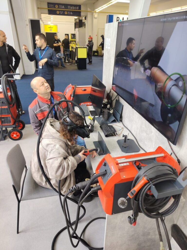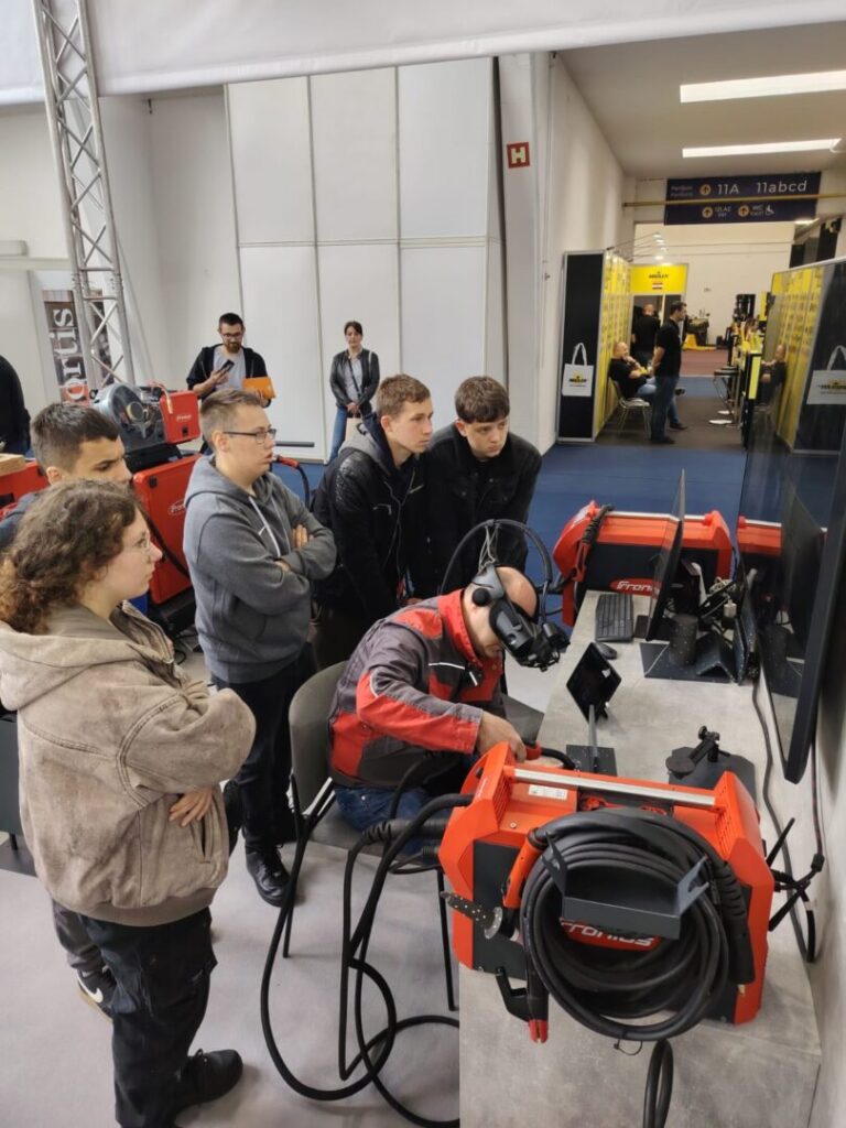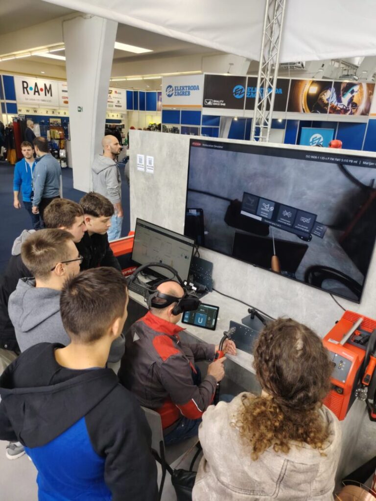 Nadalje kod paviljona Eurotehnike d.o.o. Zagreb gospodin Tucman nas je ugostio, te su učenici pod stručnim vodstvom imali priliku vježbati na simulatoru za zavarivanje.