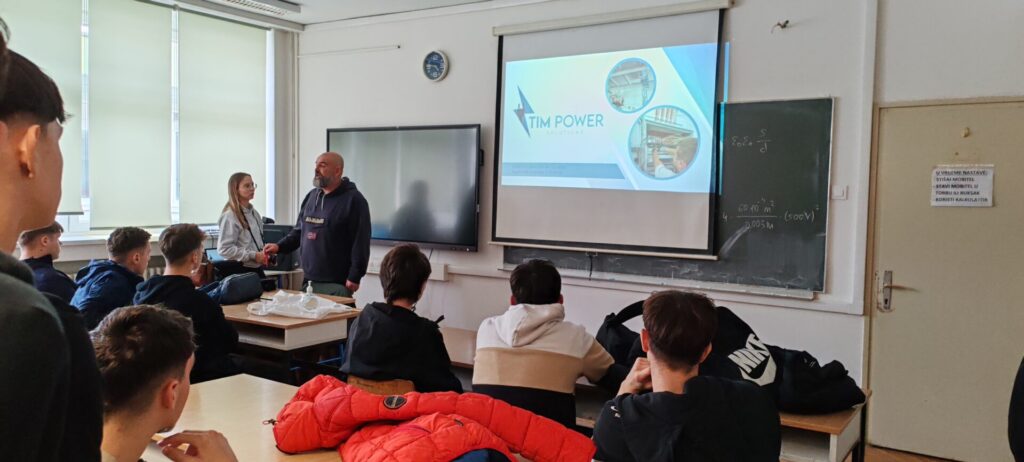 3. studenoga 2025. godine našu školu posjetili su predstavnici tvrtke TIM POWER SOLUTIONS d.o.o. iz Oroslavja. Učenicima elektrotehničkog smjera održali su kratko, ali vrlo zanimljivo predavanje o radu tvrtke, mogućnostima zapošljavanja te specifičnostima radnih mjesta u području elektrotehnike.