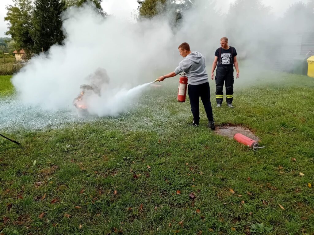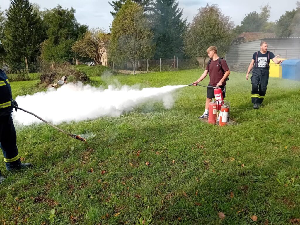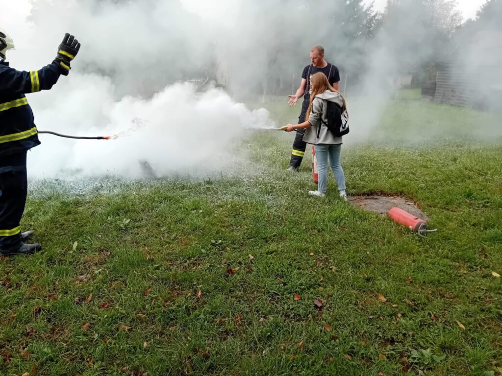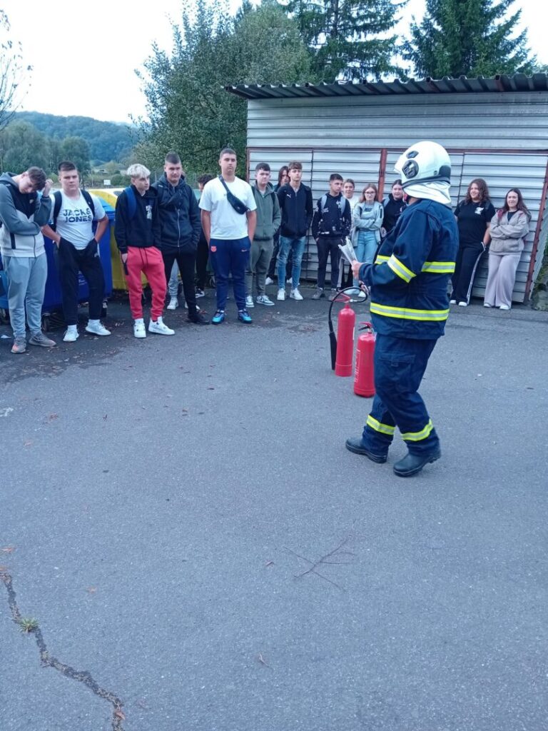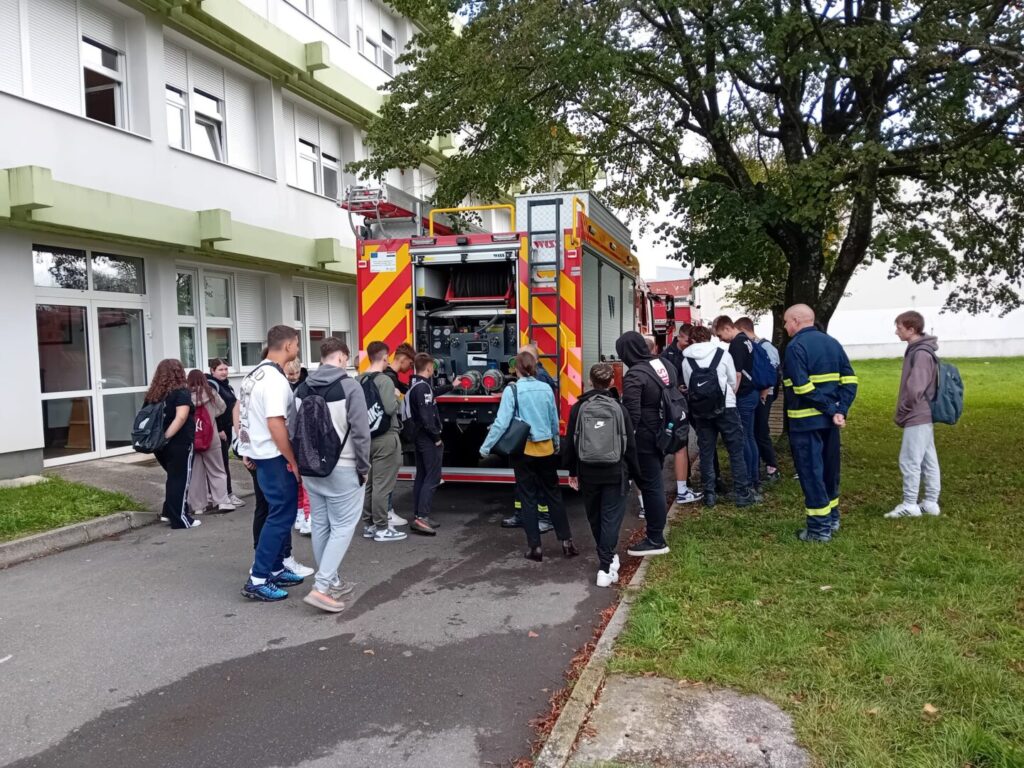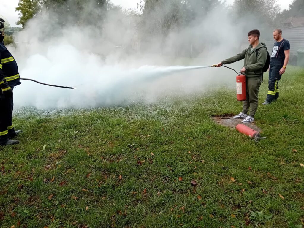 U sklopu nastave modula “Prva pomoć i zaštita na radu prometu i logistici” i skupa ishoda učenja “Zaštita na radu i zaštita od požara u logistici i prometu”, učenici 1.v razreda su u srijedu 18.9.2025. teorijsko znanje o sigurnosti i zaštiti od požara zamijenili praktičnim iskustvom koje će pamtiti. U suradnji s članovima našeg lokalnog Dobrovoljnog vatrogasnog društva (DVD) Konjščina, organizirana je uzbudljiva i iznimno korisna vježba – gašenje simuliranih požara vatrogasnim aparatima.