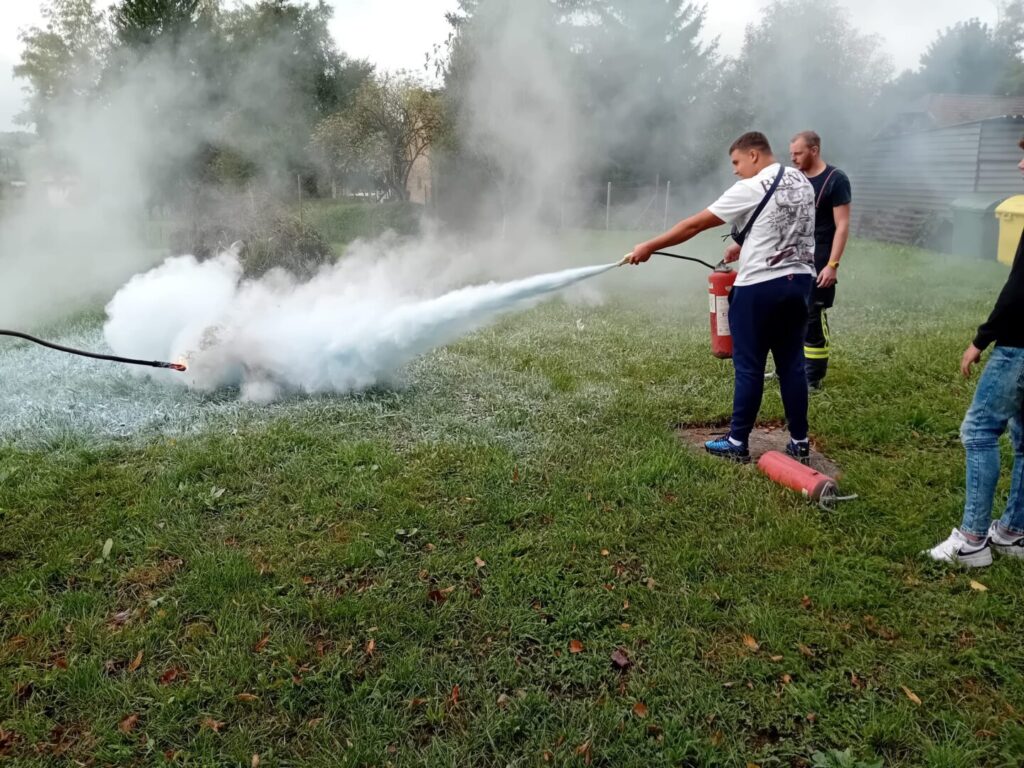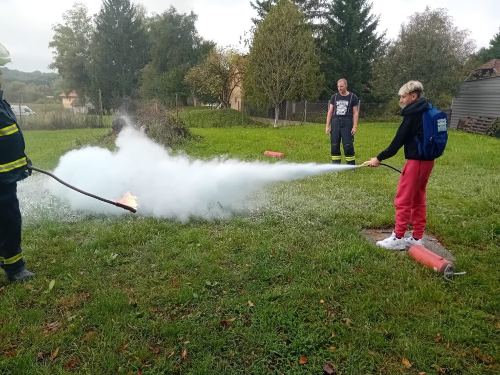 Nakon što su ih iskusni vatrogasci upoznali s vrstama požara, različitim tipovima vatrogasnih aparata i pravilnim te sigurnim rukovanjem, učenici su dobili priliku i sami isprobati svoje vještine. Pod budnim okom profesionalaca, svaki je učenik aktivirao vatrogasni aparat i uspješno ugasio kontroliranu vatru, osjetivši iz prve ruke odgovornost i važnost brze reakcije u kriznim situacijama.